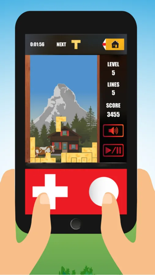 Do you like Swiss cheese, Swiss chocolate, Swiss mountains glacial ice and challenging puzzle games? Enjoy Switzerland’s landscapes, music from the Alps and retro commands! Encase the falling letters, align the remaining holes, melt the BONUS to fill them out and clear up to 10 lines at once!