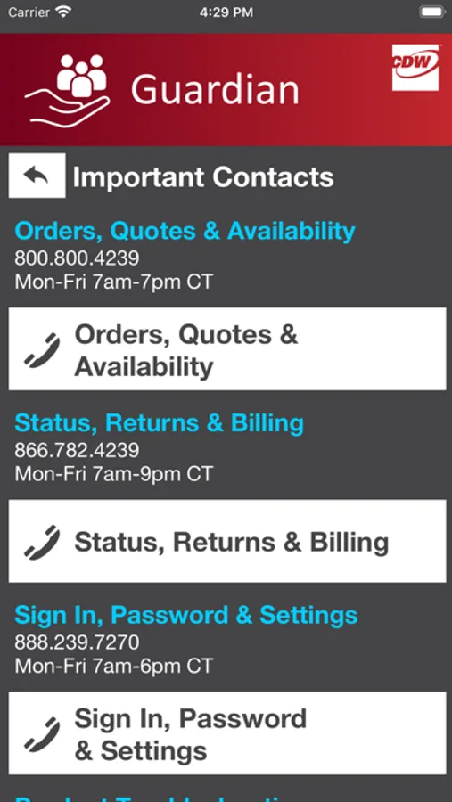 - Resources: Access support resources in one convenient app to enjoy a successful experience at CDW.