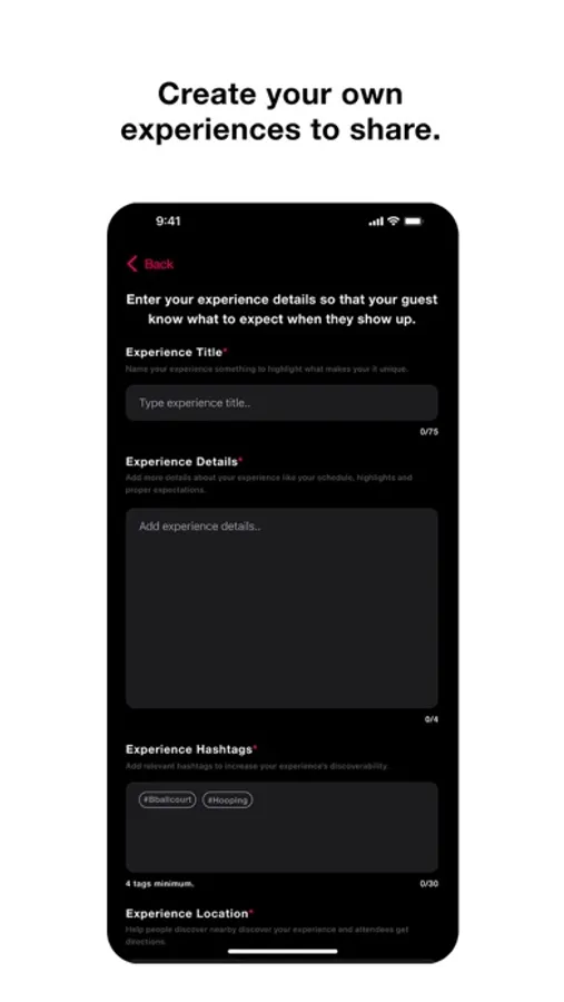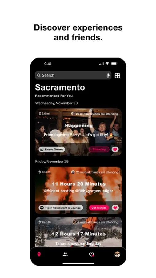 Experiences - Create public or invite-only experiences, you decide who joins. Any experiences you join or create are added to your profile and shared with your mutual friends, making it easy to expand your social circle.