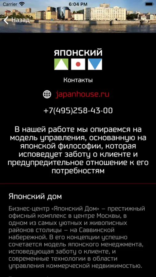 “Japan House” business center is the prestigious class “A” office complex in the center of Moscow, in one of the most cozy and picturesque districts of the Russian capital – on Savvinskaya Embankment.