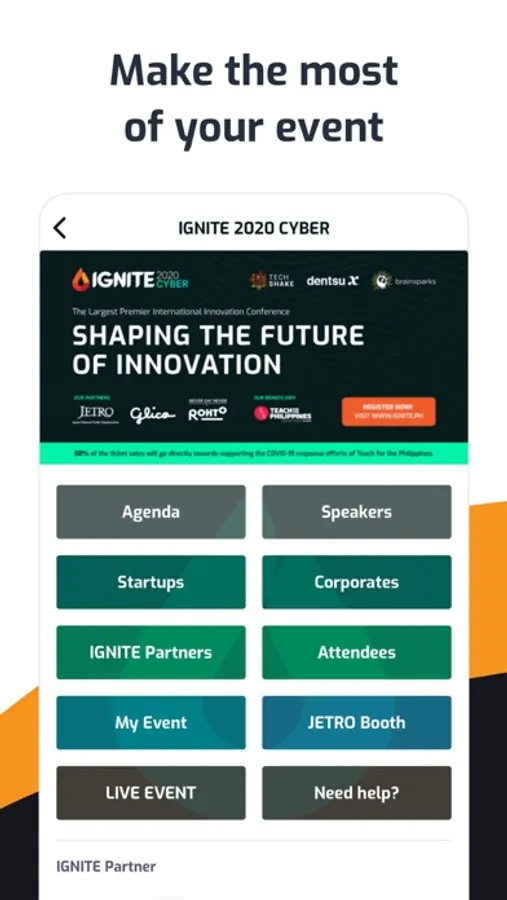 IGNITE PH App, powered by Swapcard, is the official mobile app for getting the most out of attending IGNITE CYBER 2020. With IGNITE PH App, you can build your profile, book your meetings, schedule your own agenda, know more about the speakers, connect with other attendees, visit virtual booths, and more. Business matching and networking is powered by Swapcard's AI algorithms.