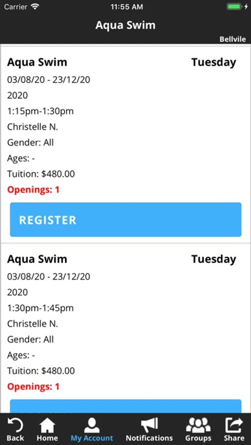 Looking to enroll or transfer classes? Search the classes we offer by time, day, location and skill level. You can register in a class or even put yourself on a wait-list. All classes listed on the app are up to the minute and accurate.