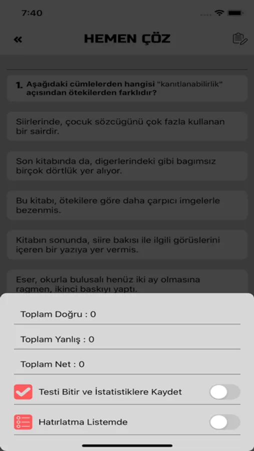 Hadi vakit kaybetmeyin hemen test çözün.
