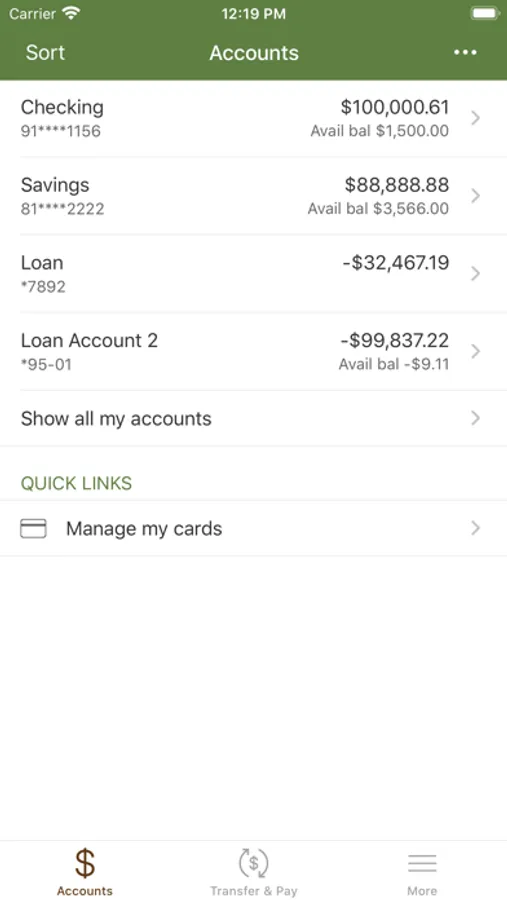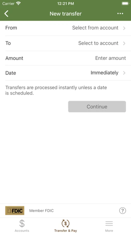 - Transfer money between accounts
