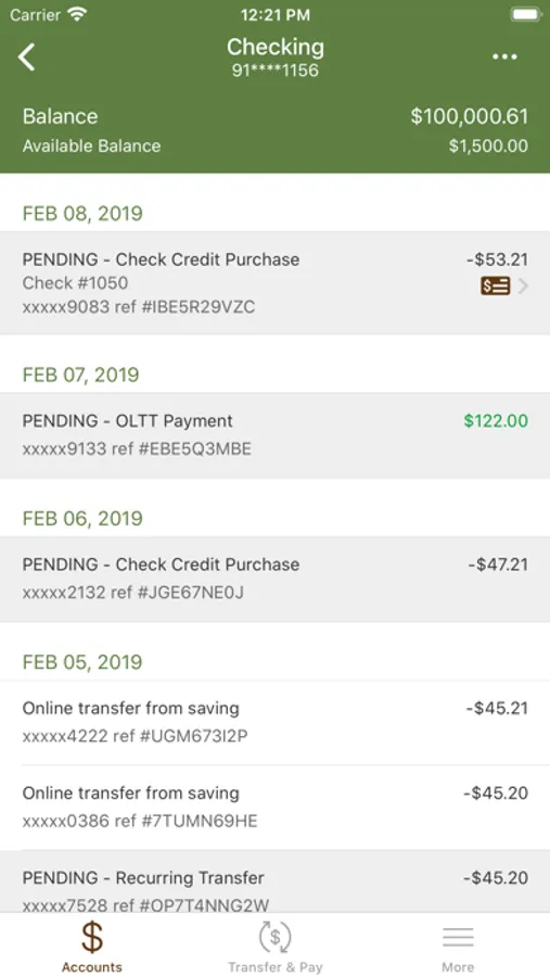 - View recent transactions, including check images