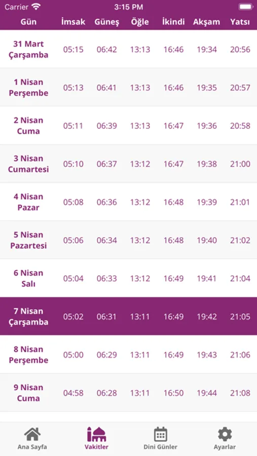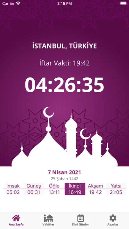 - Namaz vakitleri T.C. Diyanet Başkanlığı'ndan alınmaktadır
