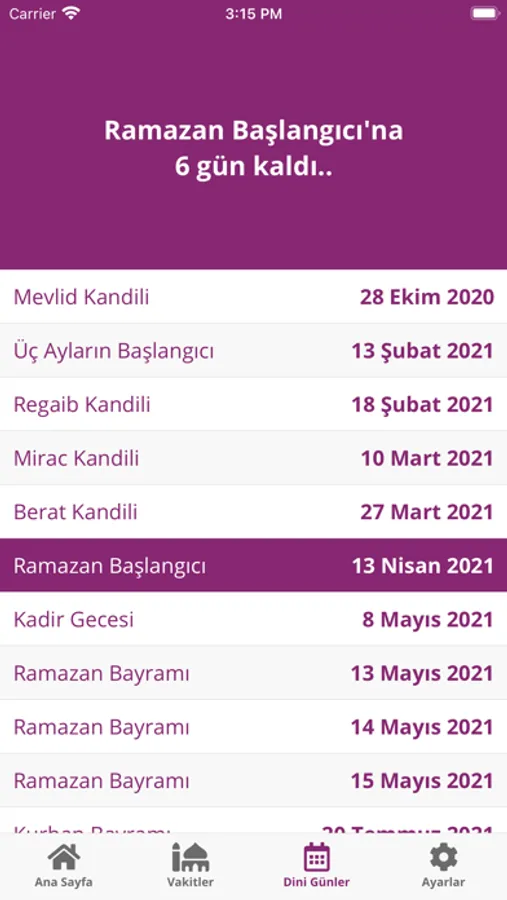 - Dini gün takvimi ve bir sonraki dini güne geri sayım