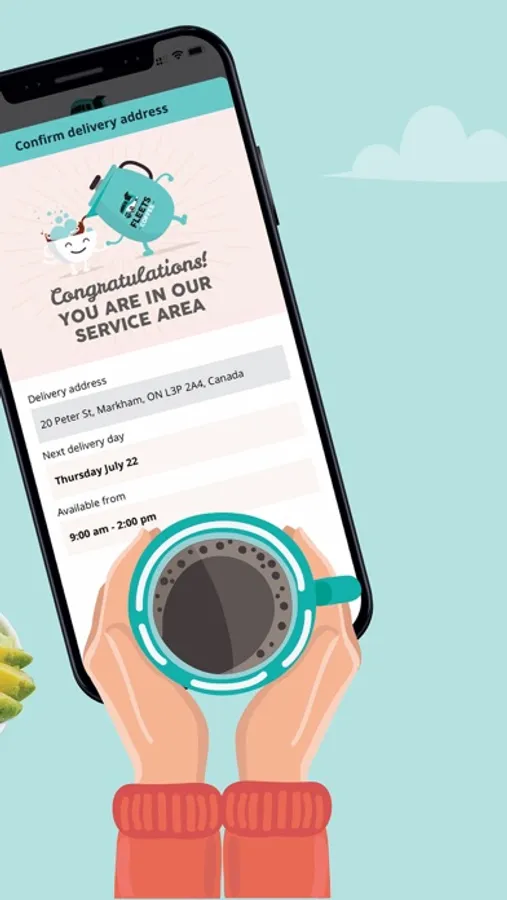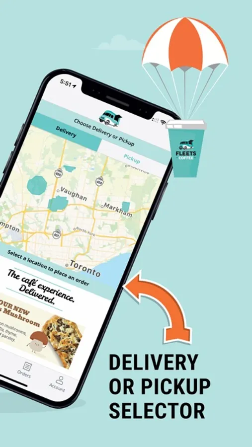 - Our delivery service allows you to easily check if you are in our delivery area and then place an order for home or office delivery. Once a delivery order is placed, one of our mobile cafés will be dispatched to your location to freshly make your order and deliver it to your door at your requested time.