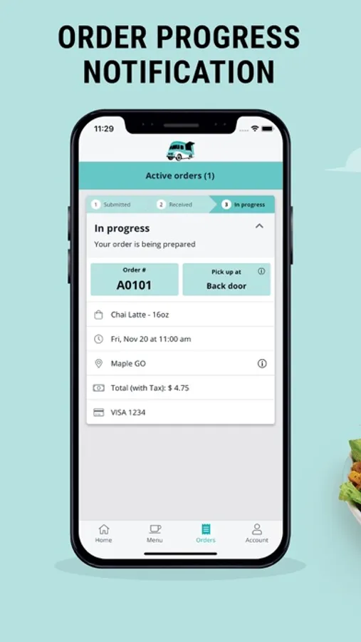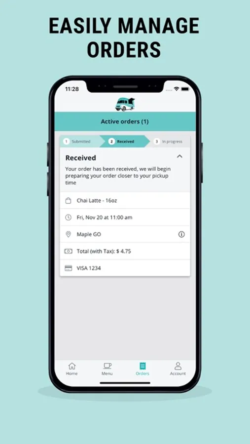 With our pickup service you can order coffee, lattes, pastries, breakfast and lunch items and much more from home for pick up at selected Metrolinx GO Transit train stations or roadside locations in the northern GTA. Our mobile app knows when you begin your commute and tells our kitchen-on-wheels the best time to make your order so that it’s fresh and ready, precisely when you arrive. Drop off your kids at school, pick up the dry cleaning, or take a call – no problem, no waiting! We won’t make your order until just before you arrive at your chosen mobile café location.