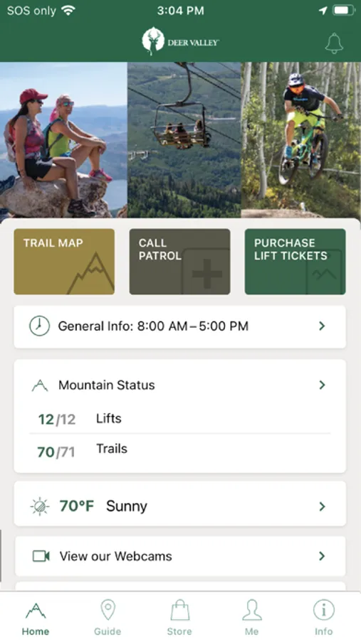 With the Deer Valley Resort Guide, get more out of every day with up-to-date lift and trail status information, local weather, mountain conditions, a trail map, as well as a complete listing of our restaurants and menus. With our app as your guide, you can make restaurant reservations, order and pay for Grab and Go items in advance, and much more. App users can also receive real-time resort operations updates and personalized experiences based on their likes and interests. You will find everything you need to make your day at Deer Valley the best day ever!