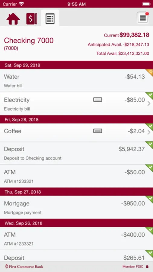 • View recent transactions, including check images