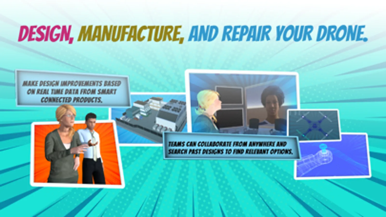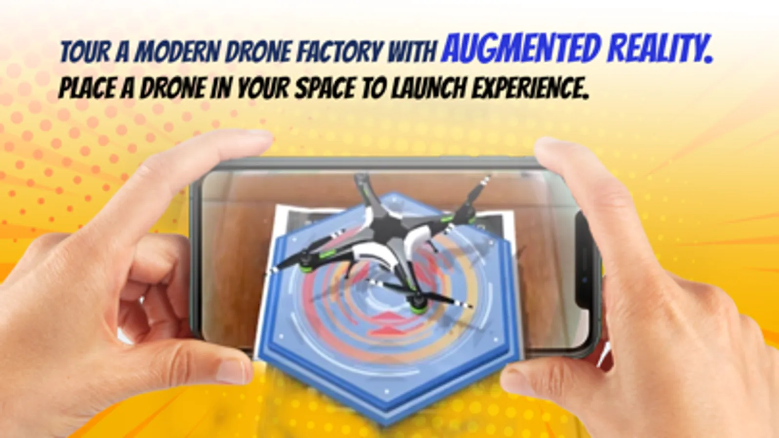 The Smart MFG 2 app gives everyone the chance to be a creator with augmented reality. Design and manufacture a drone. Begin by placing the drone in your current location—then move and tilt your device to see AR capabilities in action.