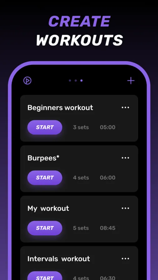 • Intervals can be configured individually. With this interval training timer you can create any interval workout with any sequence of intervals.