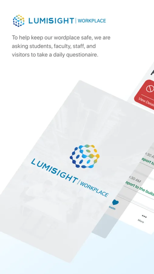Lumisight Workplace is as a free mobile app and web-based self-screening tool. Lumisight Workplace app enables the users to answer and keep track of all their daily screening check-ins to their profile and share their profile with others if they desire to do so.