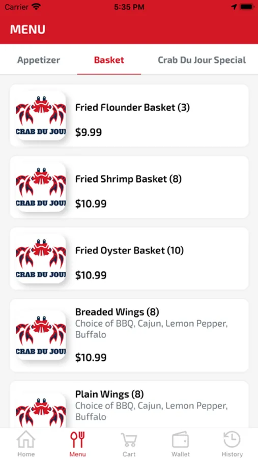 Crab Du Jour is designed for one of your merchants from our web application ezordernow.com. It offers an easy way to order food from Crab Du Jour restaurant for our EzOrderNow customers.
