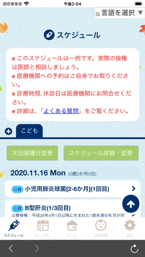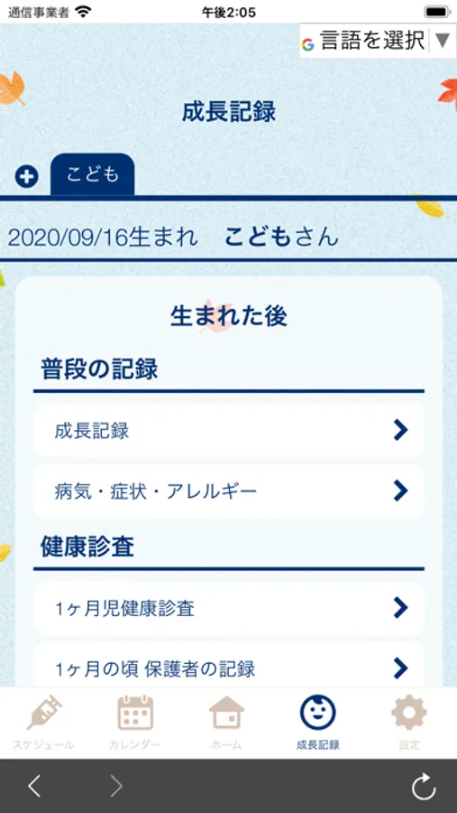 子どもの身長や体重を入力することで、成長がグラフで一目でわかる機能もあります。