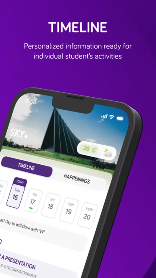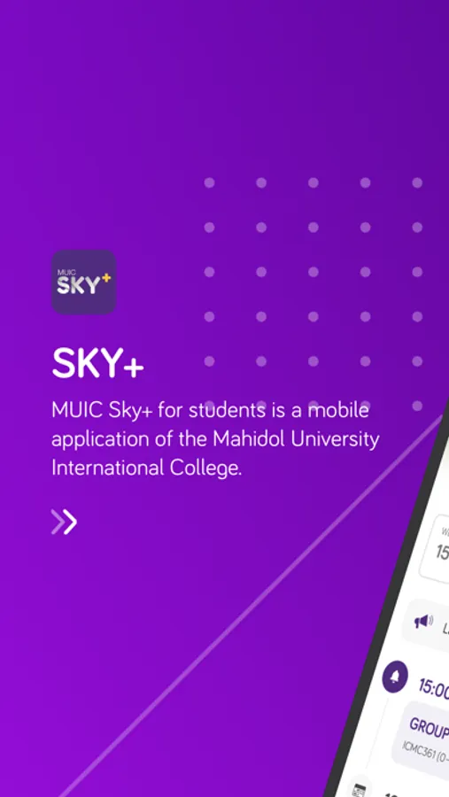 SKY+ is a mobile application of the Mahidol University International College | MUIC. This app is provided for students (MUIC username and password required). With an intuitive design and easy-to-use user interface for mobile experiences, students can now access their virtual student ID and academic information along with checking schedules and academic calendar via a mobile application.