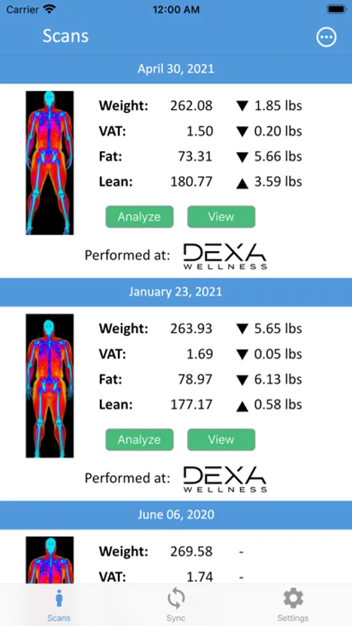 Note that FitTrace DXA partners (see https://www.fittrace.com/partners/) electronically transfer your scans to you. If you are scanned at other facilities, you may manually enter your DXA data, as an in-app purchase.