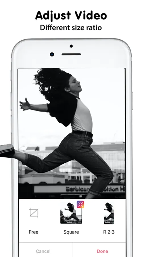 Video Crop, Cut - Adjust Music is for cropping your Videos in selected portion.