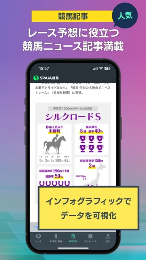 レースの予想や回顧など、データを使ってより分かりやすく視覚的に表現した競馬インフォグラフィック記事を毎週多数配信。