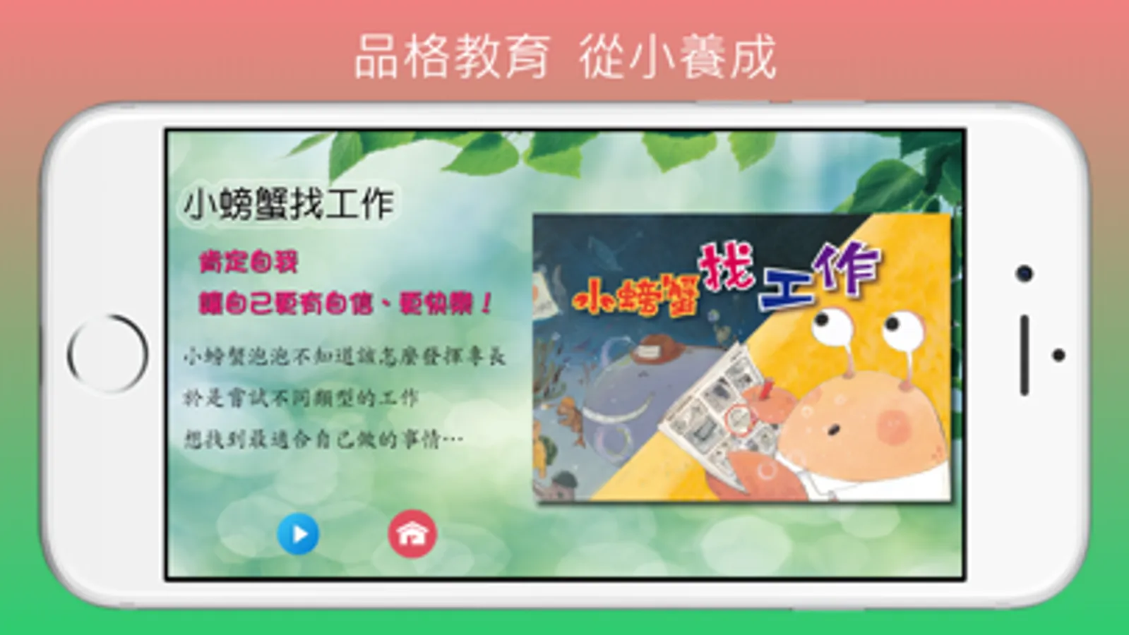 取材明日工作室出版之品格教育優良童書,精選10輯製作精美之故事繪本,每輯故事巧妙融入品格教育主題,讓孩子們在反覆觀看中,種下良好品性的認知。