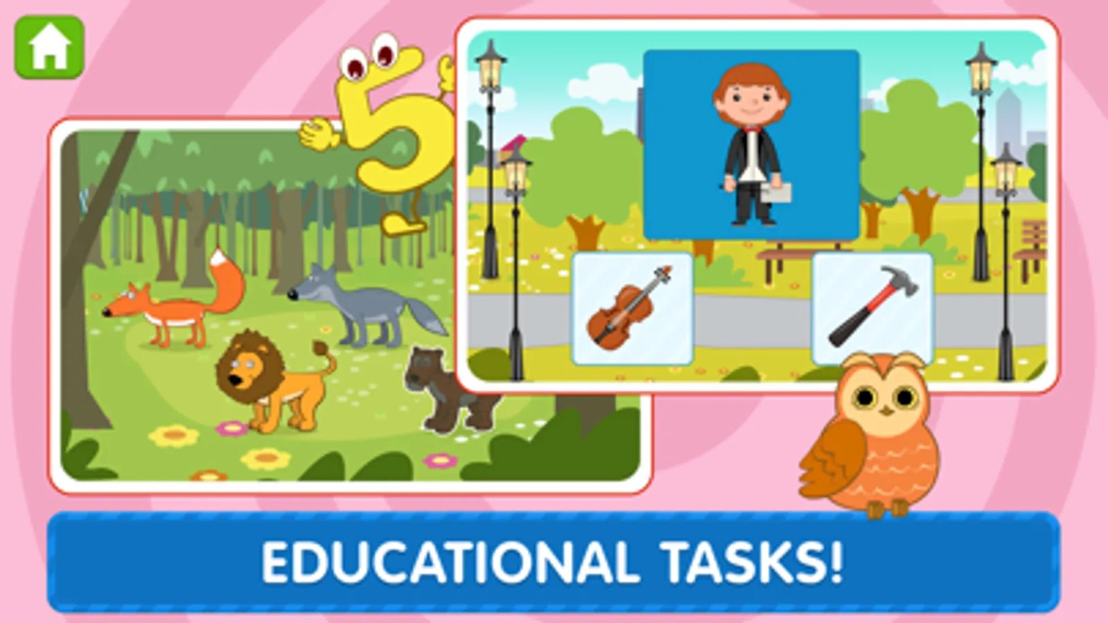 Together with the main character, your kid will complete all the steps from introduction to the topic to making logical links between the object, its shape and meaning! Funny play-centered tasks will help to practice what has been learned!