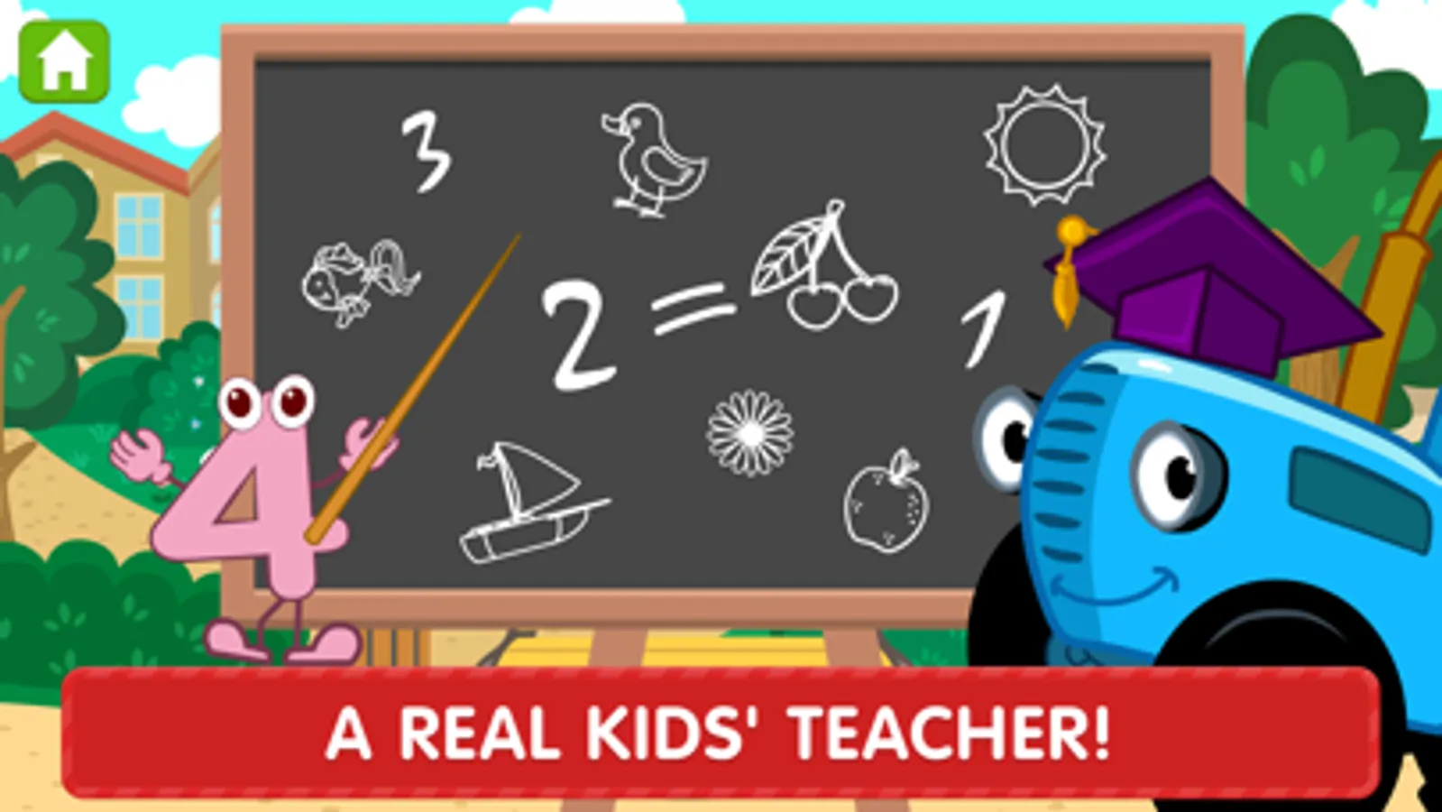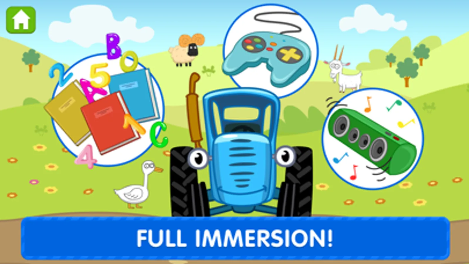 The Blue Tractor's here to teach! There's no kid that he can't reach!