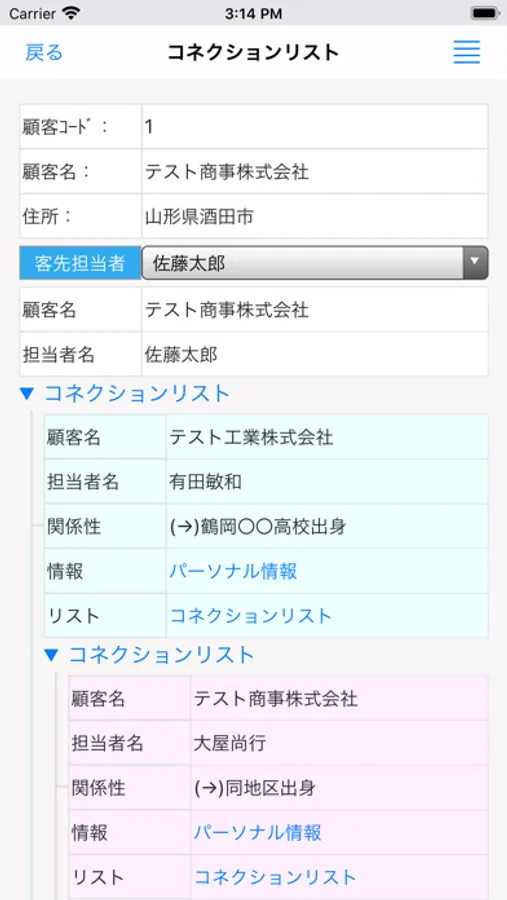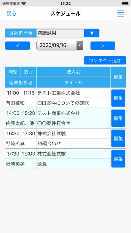 法人様向けの客先担当者情報の記録・共有ができる備忘録アプリです。