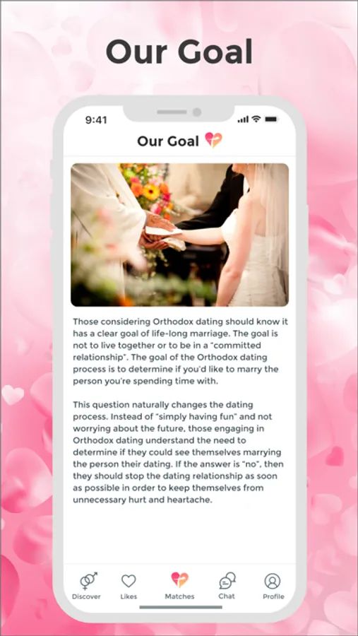 Those considering Orthodox dating should know it has a clear goal of life-long marriage. The goal is not to live together or to be in a “committed relationship”. The goal of the Orthodox dating process is to determine if you’d like to marry the person you’re spending time with.