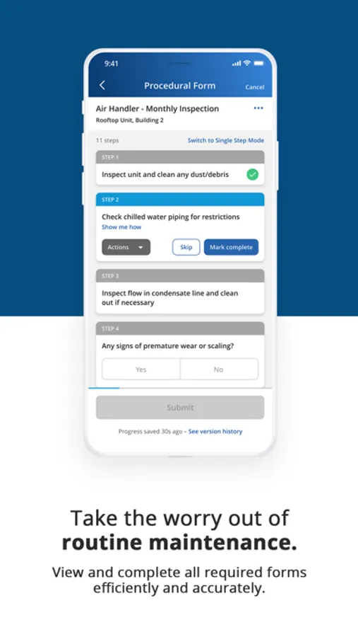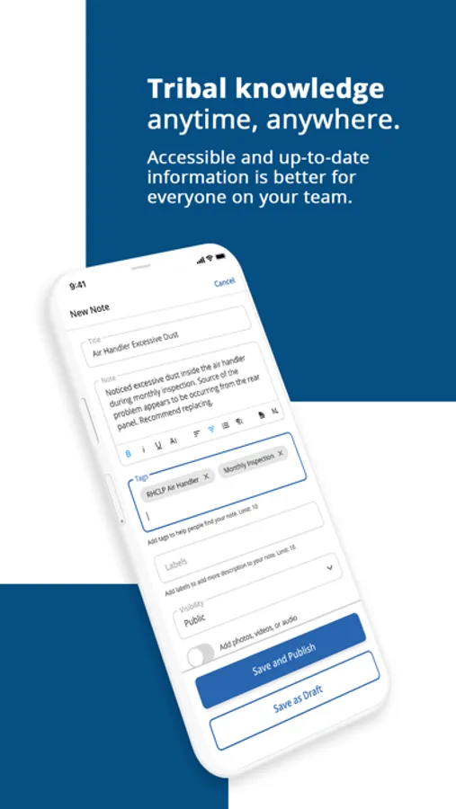 The app provides secure user access based on roles and responsibilities, allows customers to grant access to other staff, manufacturer reps, guests, and first responders to utilize appropriate content to solve issues. Empowering others with “how to” knowledge decreases unnecessary calls to resolve maintenance issues. This daily increase in overall productivity provides hours of time dramatically reducing overall costs.