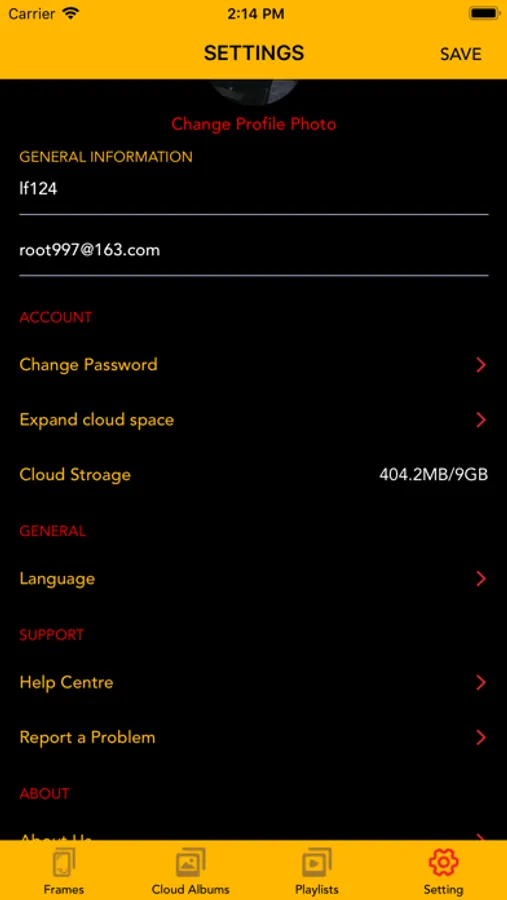 Picture Frame settings. It can connect up to 5 frames by scanning the QR code