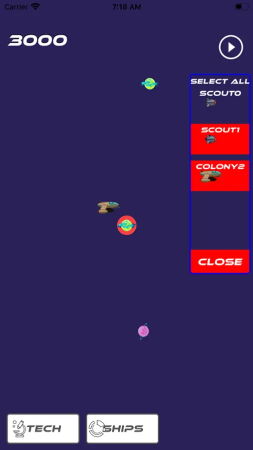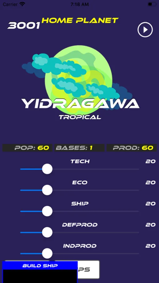You start on one planet, with a couple of ships at your disposal. Click on the planet to set different values, such as production, population growth, building.
