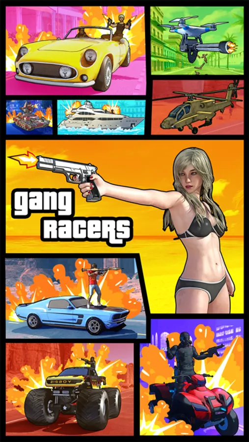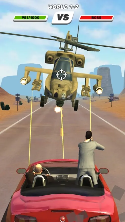 On the road you will meet multiple varied cars and other vehicles from the mafia. Engage in exciting city road shootouts with sports cars, muscle cars, SUVs, jeeps, quads and more! Shoot down drones, hit exploding barrels for maximum damage!