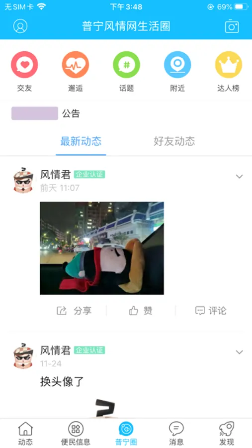 普宁风情网是普宁网络生活门户,拥有百万粉丝,业务涵盖吃喝玩乐衣食住行等等。