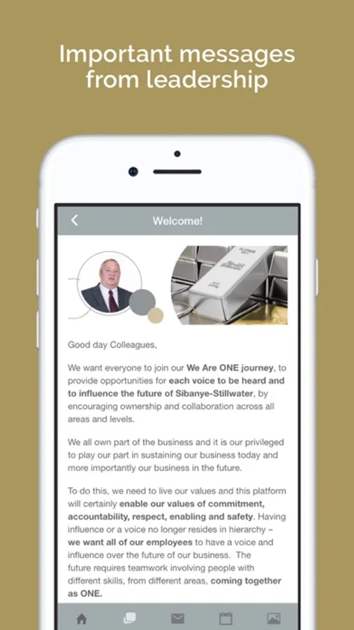 Our We are One mobile app is the best way to connect everyone at Sibanye-Stillwater around the world. It’s always on and the easiest way for you to: