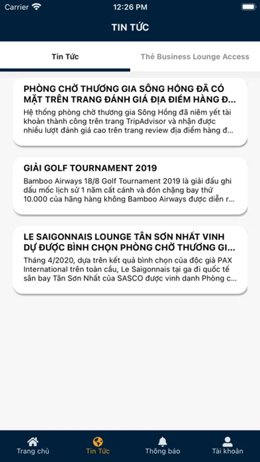 Thẻ đặc quyền sử dụng phòng chờ hạng thương gia - Kết nối mạng lưới sử dụng phòng chờ thương gia trên toàn Việt Nam. Business Lounge Access là dạng thẻ điểm mua trả trước cho phép chủ thẻ cùng người đi kèm dễ dàng sử dụng dịch vụ phòng chờ thương gia tại các sân bay Việt Nam. Với tấm thẻ này, quý khách tiếp cận các phòng chờ thương gia mà không bị phụ thuộc vào hạng vé và hãng hàng không.