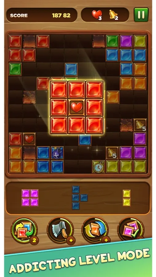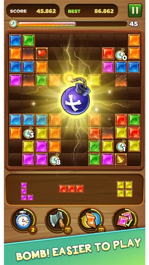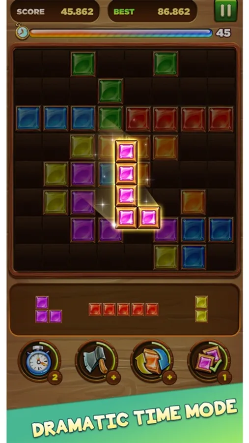More blocks explode, more points you will get. Play the game and you'll love this Wood block puzzle game.