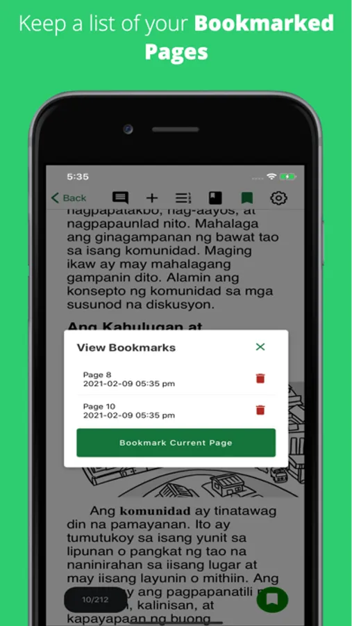 - Track your reading progress. See what page of the book you’ve read, real page numbers