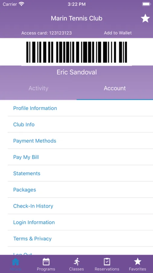 Access to all of your membership account & club details, with easy court booking and check in process.