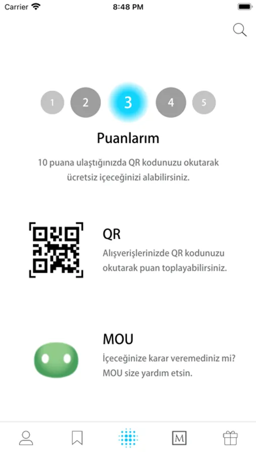 - Puanlar biriktirebilir, biriktirdiğiniz puanlarla ücretsiz içecek alabilirsiniz,
