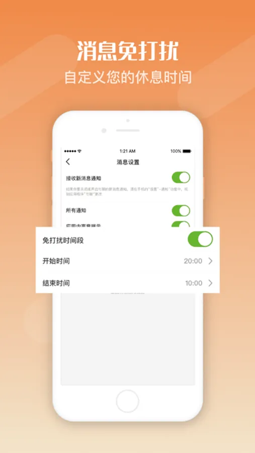 5 自定义您的休息时间,可以自由设置免打扰时间段。