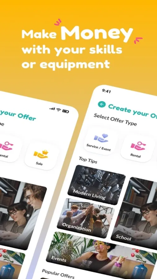 • make money by offering know-how, skills and belongings