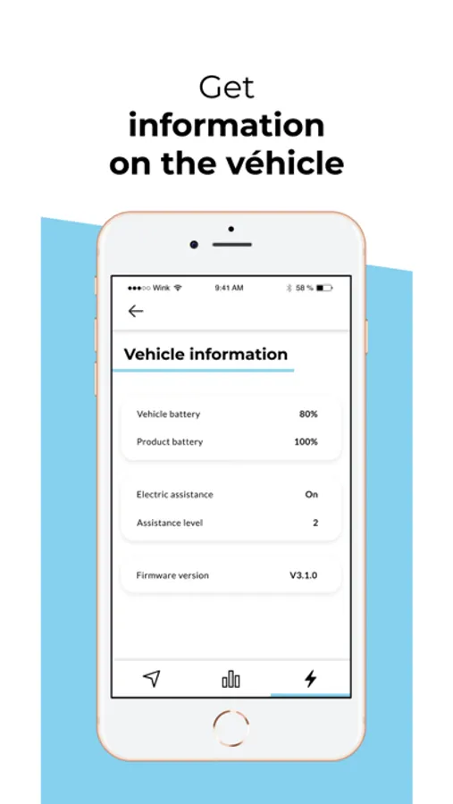 - Vehicle Informations: vehicle and product battery, electric assistance...