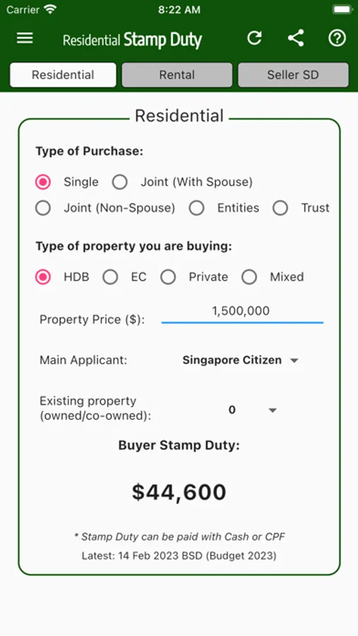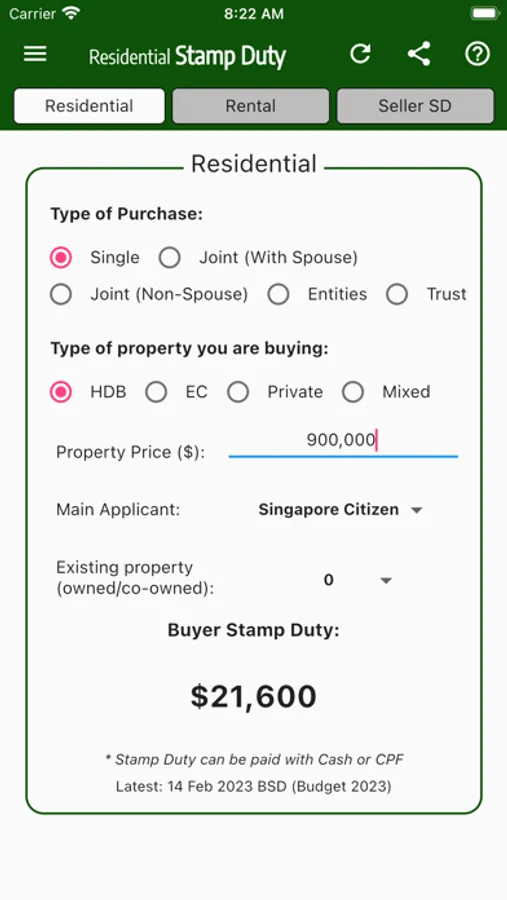 Liable buyers are required to pay ABSD on top of the existing Buyer’s Stamp Duty (BSD). ABSD and BSD are computed on the purchase price as stated in the dutiable document or the market value of the property (whichever is the higher amount).