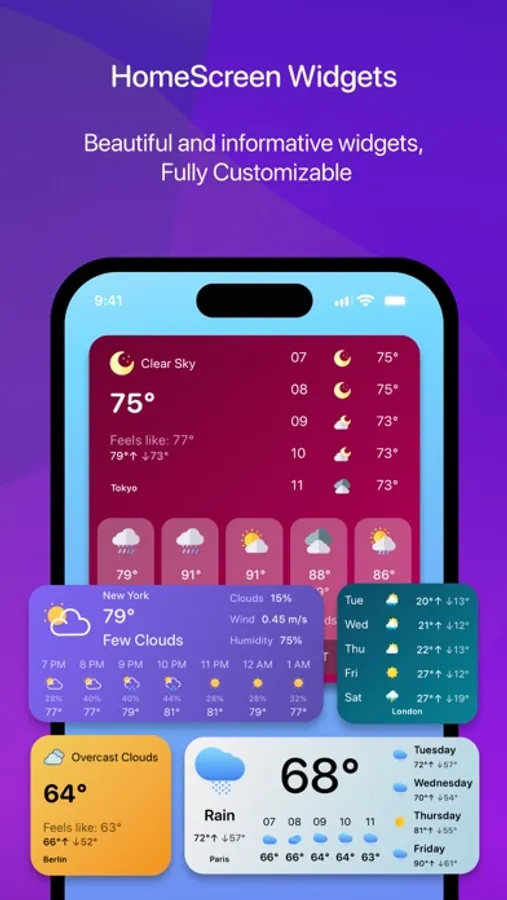 HeyWeather provides limitless widget customization, with regular updates adding more options. Customize Forecast widgets with a long press, and explore beautiful lock screen widgets!