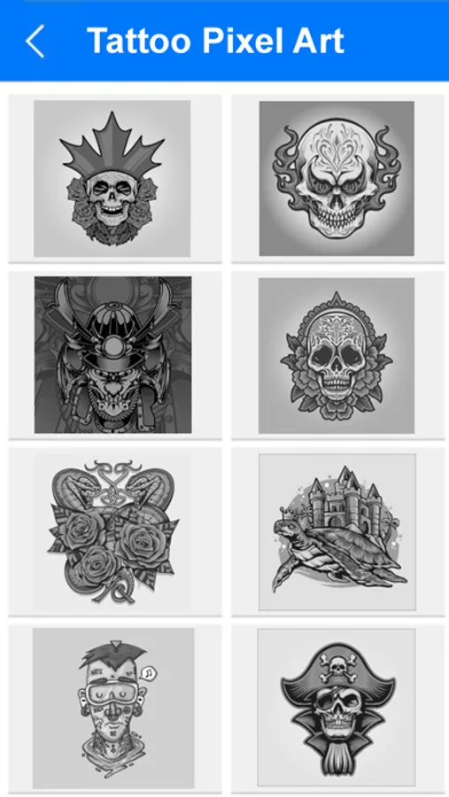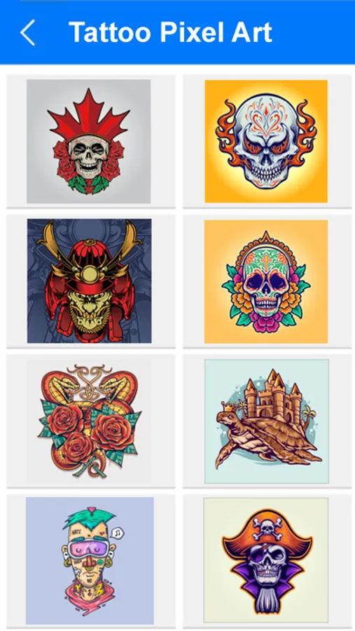 You can enjoy tons of amazing tattoo coloring pixel art images in this amazing tattoo coloring game.