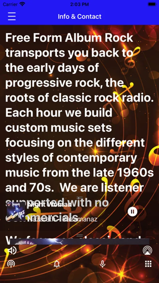 Free Form Album Rock transports you back to the early days of progressive rock, the roots of classic rock radio. s, the 70s. Your favorite classic artists are here 24/7; we are listener supported, NO commercials.