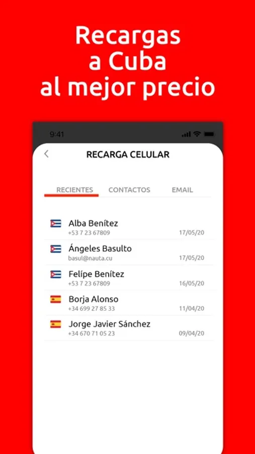 If your family prefers that you recharge their Nauta account, aCuba makes it very easy for you. We allow you to filter your contacts so that only those with valid nauta email are shown and thus you can put your recharge with minimal effort.