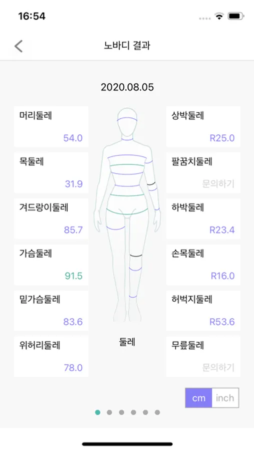 (제공되는 신체 항목- 가슴둘레, 허리둘레, 엉덩이둘레. 상박(팔) 둘레, 허벅지 둘레, 종아리둘레)