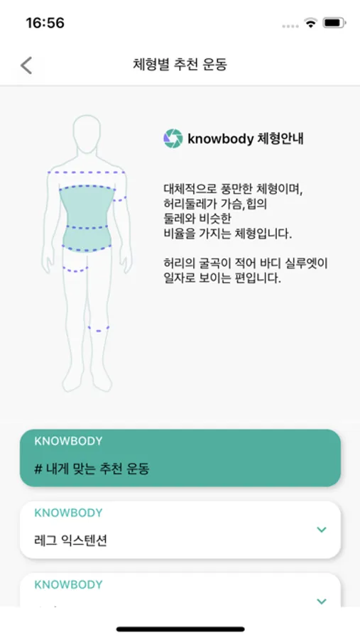 - 체형별 추천 운동: 신청한 치수를 통해 분석된 체형을 확인할 수 있습니다.